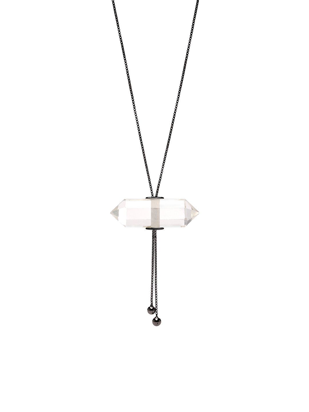 GLIDING CRYSTAL DOUBLE POINT NECKLACE BLACK RHODIUM